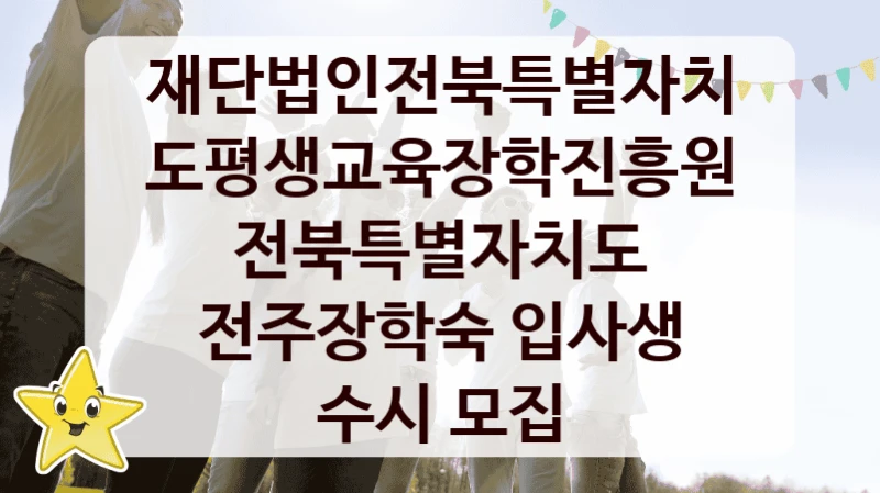 이번에는 재단법인전북특별자치도평생교육장학진흥원 서비스관리부서에서 제공하는 전북특별자치도 전주장학숙 입사생 수시 모집 지원 제도에 대해 알아보겠습니다.